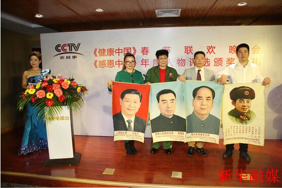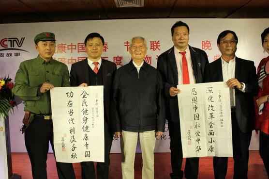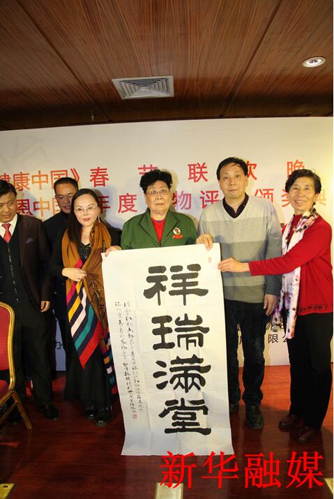 周恩来总理养女邵玉凤大姐向组委会赠送了毛主席、周总理、习主席、雷锋画像;北京新华融媒书画院院长梅丽琼应《健康中国》春节联欢晚会组委会邀请,题写了活动主题汉碑隶书《健康是金》,赠送给《健康中国》春节联欢晚会组委会,同时向周恩来总理养女邵玉凤大姐赠送了汉碑隶书《祥瑞满堂》。
