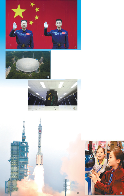 “探索浩瀚宇宙,探究科学与未来,我们拥有同一个航天梦。”这是景海鹏、陈冬在出征太空之际,给人民日报广大读者的题词。今年是中国航天60年,走过一甲子的中国航天事业,从无到有、由弱到强,正在努力实现从航天大国到航天强国的跨越。明年,我国还将发射首艘货运飞船——天舟一号,“嫦娥五号”也有望升空,完成探月工程的重大跨越——带回月球样品。航天梦,强国梦,步履铿锵。