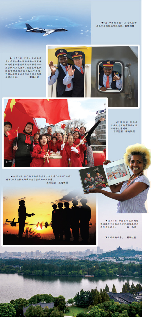 与中国深化友谊合作的又何止19个国家。中美元首 “西湖长谈”,释放增信释疑、协调合作的积极信号;中俄元首年内实现5次会晤,就加强全球战略稳定发表联合声明;中国─东盟共庆对话关系,澜沧江—湄公河合作机制启动,为区域合作打造新引擎;近20位非洲国家领导人来华,“中非十大合作计划”全面落实中……中国外交全面开花。