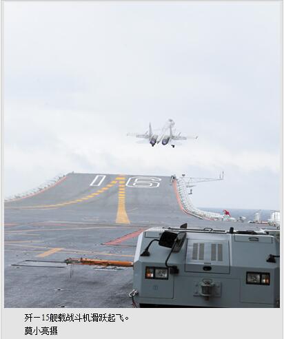 上午9时30分许,灰色涂装,编号115的“飞鲨”战机率先进入辽宁舰飞行甲板起飞位置,随着甲板起飞助理的放飞手势,开足马力,直冲云霄。