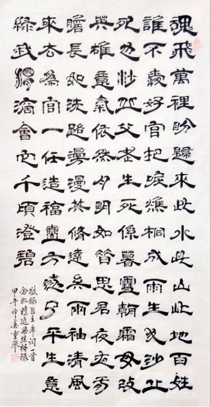 ---同时,《爱莲说》《公室铭》《习主席语录》部分创新作品连年被全国两会邀请发布。荣获:“中国最具有突出贡献的书画名家”、“中国书画界领军人物”等称号。