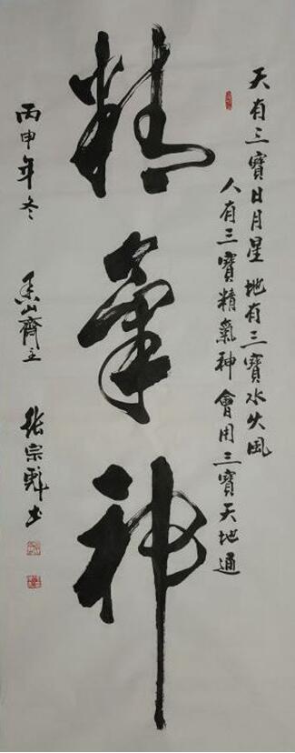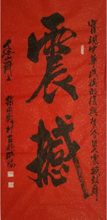 张先生自幼喜爱书画,坚持六十余年临池不辍。楷、行、草、隶、篆皆能,尤以行草、榜书见长。鎔古铸今,自成一体。其书法作品大气磅礴,气势恢宏,刚柔相济,颜筋柳骨,铁画银钩,风格独特。其代表作“无欲则刚、厚德载物、北国风光……”等30幅代表作获《中华人民共和国国家版权局著作权登记证书》。