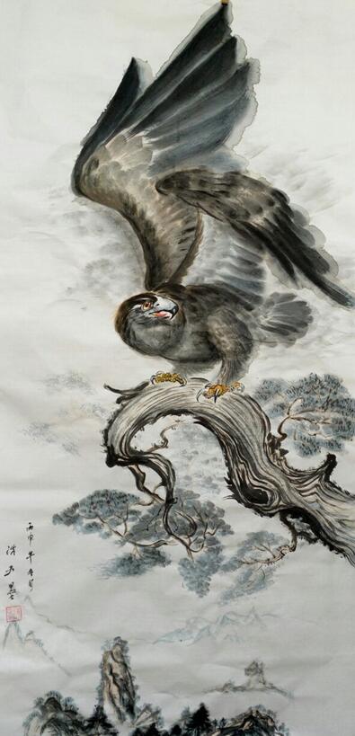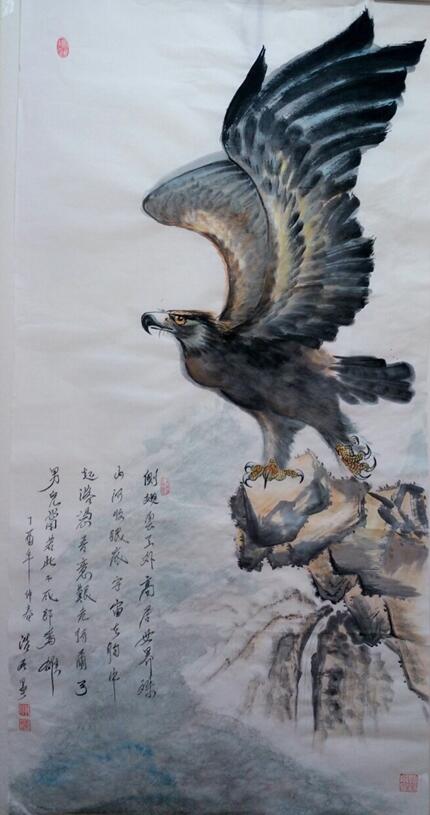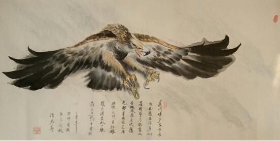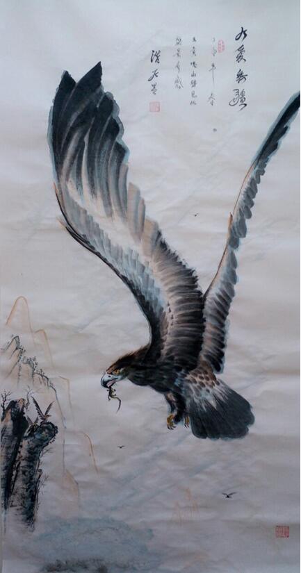 他的个性,天赋、风格、就是一个典型的鹰派人物。他师造化,师大自然,画鹰师鹰,师前人,然后下笔,飞来了自己理想中的鹰。陈永刚的鹰是现代的鹰,是能博击犲狼的鹰,是能抓老虎的鹰,是能保卫祖国的鹰,是激励人民的鹰,是使人奋进的鹰,这样的鹰越多,国家民族才有希望,这样的鹰谁不喜欢?这才是真正的艺术品!就是真正的由科学家成为的艺术家!