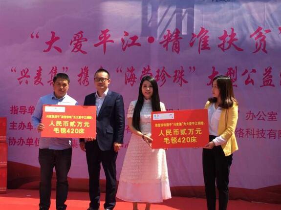 今年4月,万众和旗下兴麦集商城进入平江,设立兴麦集平江运营中心。中心成立之后,受到平江县委县政府的关注与支持。公益慈善,可大可小,人人可为。兴麦集商城了解到平江县正在开展大爱平江扶贫助困慈善活动,秉承着“大爱无疆”核心价值观,兴麦集商城联合海莹珍珠一起举办这次公益活动,为扶贫助困贡献自己的力量,同时希望以自身行动号召更多的企业、个人参与到“大爱平江”活动中来。