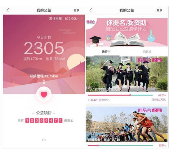 2017年1月,唯品会发布2016年用户公益行为大数据成果,通过爱心里程捐赠地区分布、捐赠高峰时段等排行榜,展现年度暖心数据背后的“公益新姿势”,吸引用户狂晒“爱的成绩单”;4.19特卖狂欢节之际,首创“购物+公益”创新机制:用户下单每满419元,唯品会就向“公益助学计划”捐出4.19元,用户在成功收货后,即可在订单页查收自己的爱心成绩。大促开场86个小时,近250万用户订单成功转为“爱的GDP”,最终为3123名贫困学子引爆爱的惊喜。