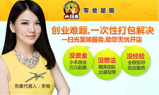 沪上知名的零食店加盟品牌一扫光是一家集原料采购、全产业链覆盖、全程联网管理、终身营销服务于一身,运营经验丰富,实力雄厚的零食店加盟连锁品牌。如今在全国的一扫光零食加盟连锁店已超三千家,并且这个加盟店的数量还在不断扩大,投资创业选择哪行好?选择李湘代言的一扫光零食量贩,免去您创业烦恼,轻松拥有一家赚钱的零食店。