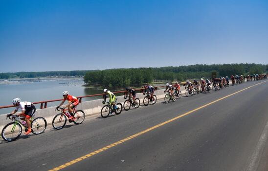 而这正是5月13日中国自行车联赛江苏新沂站暨第七届中国新沂环骆马湖自行车公路公开赛的一个镜头。