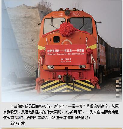 今年是《上海合作组织宪章》签署15周年,也是《上海合作组织成员国长期睦邻友好合作条约》签署10周年。在成员国共同努力下,上合组织已经成长为一个有着先进合作理念和重要国际影响的地区合作组织,为促进地区的和平与发展发挥着重要作用。即将举行的阿斯塔纳峰会将完成印度、巴基斯坦加入程序。上合组织将成为世界上人口最多、面积最大的地区合作组织,迎来前所未有的发展空间与合作潜力