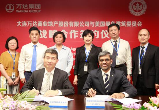2017年6月7日,大连万达商业地产股份有限公司与美国绿色建筑委员会(USGBC)在北京签署战略合作协议。万达商业地产高级副总裁赖建燕、USGBC首席执行官Mahesh Ramanujam、万达商业规划院副院长方伟、USGBC全球市场开发总监程乃立等出席了签约仪式。