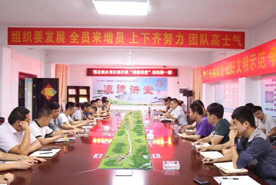 2017年6月16日,中铁十一局一公司鄂北调水工程14标项目成功举办2017年度第一期“道德讲堂”活动,为项目员工送上一份精神大餐。本期“道德讲堂”以“凝聚、修身、学模范”的形式传播企业文化、温习道德经典、学习道德楷模,引导职工学习道德模范和身边好人,自觉成为文明道德的传播者和践行者,汇聚企业发展正能量。