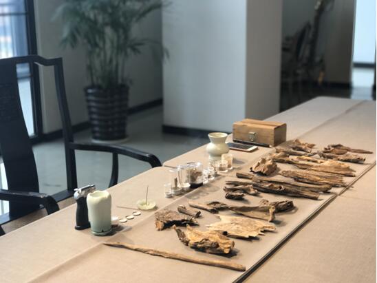 6月14日下午,在东阳中国木雕城二期非遗学堂,来自东阳、义乌等地的100多名香文化爱好者共同参与了本次公益讲座。太月香学创始人罗子杰先生为现场的各位香友讲述了中国香文化历史发展过程以及四大名香,并由香道师陈翔先生为大家演示了流行于宋代的隔火熏香。在互动环节中,爱好者们共同品鉴了四大名香“沉檀龙麝”,还针对日常用香的正确选择及沉香的药用价值、日常运用等话题进行了深入探讨。