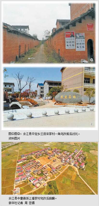 余江县将宅改与新农村建设相结合,一边拆旧,一边建新。截至目前,全县新建设村内道路255公里、沟渠155公里,新增绿化面积780亩。行走很多乡村,出门水泥路,雨后无积水,房前屋后绿意盎然。