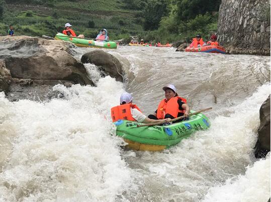 据悉,古夜郎漂流全长7公里,全程漂流用时大概3个小时左右,水质清澈纯净,滩多浪急,沿途经过姊妹滩、上龙滩等二十多个险滩和千尺潭、龙蛇潭等十多个深潭。