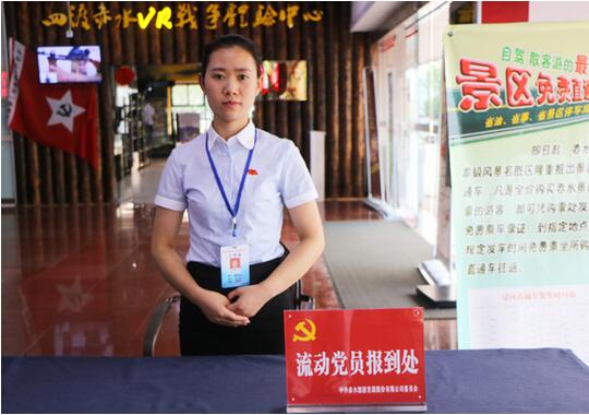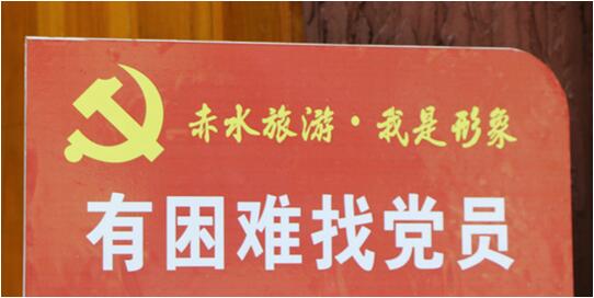 在赤水游客接待中心,游客一进门,首先看到的是一个应有红底黄字的党徽和“流动党员报到处”醒目标识牌。这是赤水旅发公司党委积极与外地旅行社开展友好合作,在来赤水旅游团体中建“临时党支部”,让外地党员游客来赤水旅游时能够以党员身份参与赤水景区管理、政策宣传、文明劝导、志愿服务等工作,自觉发挥党员先锋模范作用,自觉遵守旅游管理规则并带头开展文明旅游引导、示范活动,引导团队游客接受赤水红色文化、历史文化、扶贫文化、生态旅游文化教育。单独党员游客到赤水各景区旅游时,通过到景区“党建驿站”、党员示范岗报到后开展旅游服务工作,参与景区党支部组织的各类活动,引导游客规范文明旅游行为,同时,参与旅游服务的党员游客享受赤水旅游优惠政策,免费游1个景区景点,让党员在赤水能够同时享受绿色、红色、生态、党员教育等多重体验和旅游。