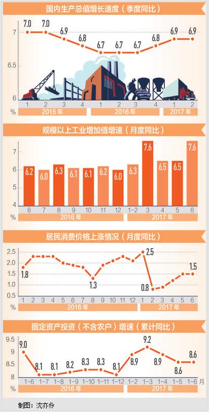 在7月17日国新办举行的新闻发布会上,国家统计局公布,上半年我国GDP增速为6.9%,其中二季度GDP增速6.9%,与一季度持平,经济增速连续8个季度保持在6.7%—6.9%的区间。此外,工业增速创下2015年以来最好水平,居民可支配收入实际增速继续跑赢GDP,民间投资和制造业投资增速都在回升。