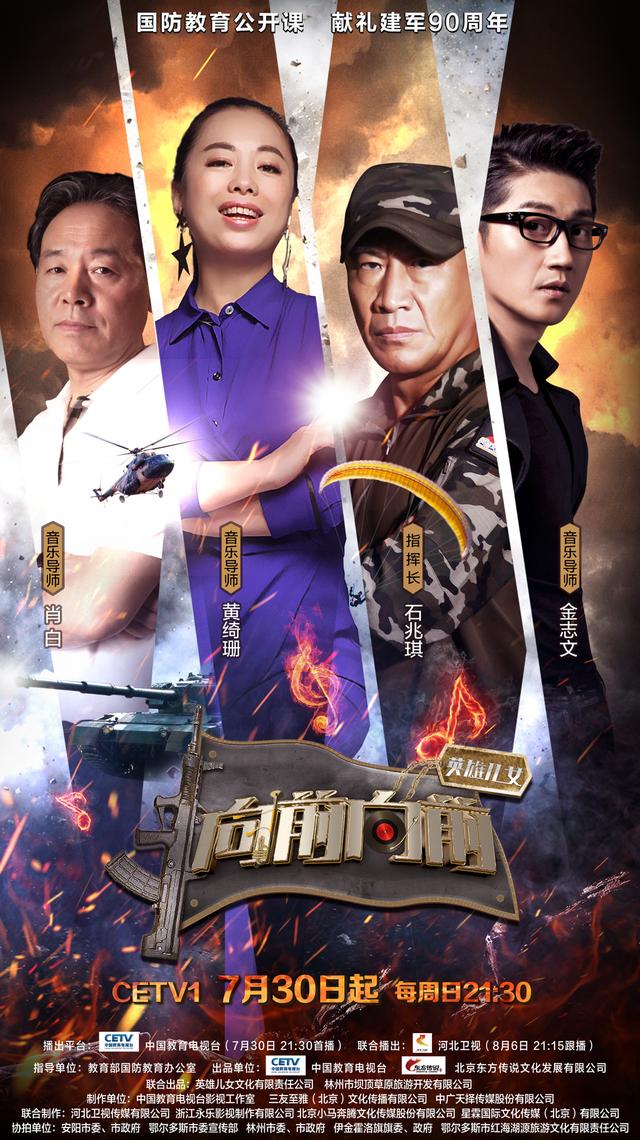用军歌串起历史、用体验感悟英雄、用信仰续写明天!如果你崇尚革命精神,热爱军歌文化,向往军旅生活,就一定不要错过这样一堂热血澎湃的国防教育公开课!《英雄儿女向前!向前!》将于7月30日起,每周日晚21:30在中国教育电视台一频道(CETV1)震撼播出。