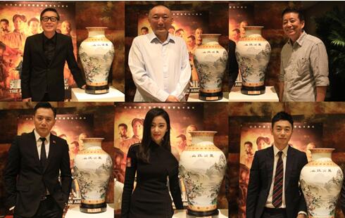 首映活动中,《盛世江山》瓷瓶作为电影独家授权的特制珍藏瓷被赠予导演刘伟强、总策划韩三平、监制黄建新、著名演员刘烨(饰 毛泽东)、朱亚文(饰 周恩来)、张天爱(饰 宋美龄)等。《盛世江山》特制珍藏瓷画面中34朵省花、区花围绕国花牡丹铺展,巍峨的长城和绵延的狮子山自然衔接,360度通景呈现,于一瓶之间尽览祖国江山盛景。这是在国内首次实现影视、工艺美术跨界联合的创举之作,受到到场的主创人员和明星们极高的评价。