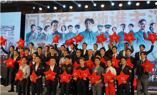 出席《建军大业》北京首映礼活动的主创人员合影,史无前例的阵容令现场观众为之沸腾