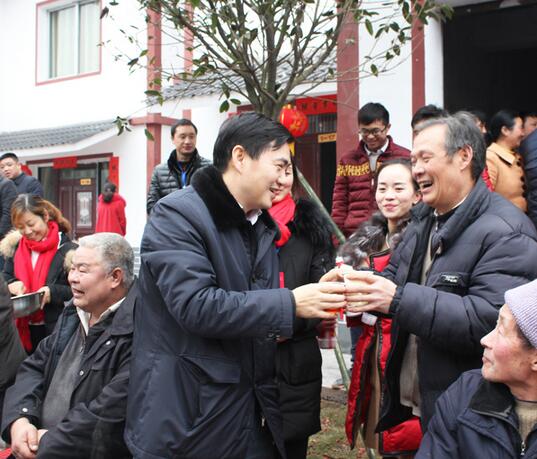县委书记向承强在大坡镇扶贫调研过程中,看到老百姓的生活蒸蒸日上,于是高兴地和村民们把酒言欢