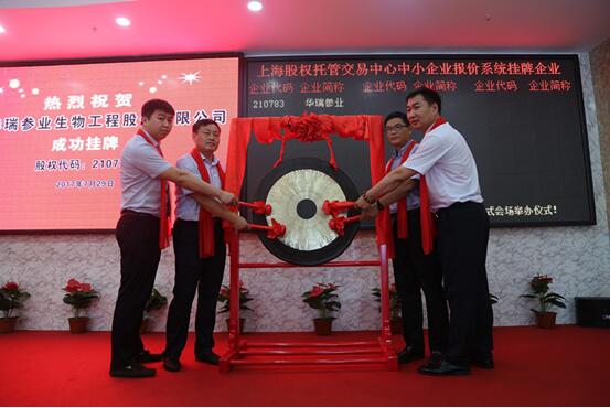酷暑难耐,清风送凉,2017年7月29日,珲春华瑞参业生物工程股份有限公司在上海股权托管交易中心挂牌上市(股份代码:210783,企业简称:华瑞参业)为中国的保健食品市场送来了一阵清风,同时华瑞参业的挂牌上市也标志着公司迈向了发展的又一新的里程碑。