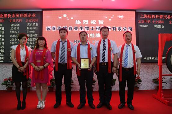 ▲珲春华瑞参业生物工程股份有限公司挂牌敲锣仪式