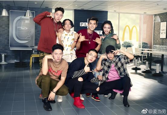 而麦当劳则利用《中国有嘻哈》影视热潮,让“freestyle”代言人吴亦凡带着节目里一众人气选手拍了一条rap版TVC。
