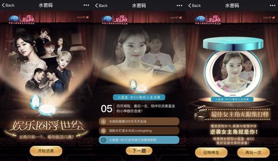 娱乐至上、趣味第一的年轻群体来说,游戏总能牵动他们。于是水密码推出了同款H5小游戏《娱乐圈浮世绘》,从话题到脚本、从视觉到机制,一款极具魔性的同款H5游戏燃点他们的玩心。