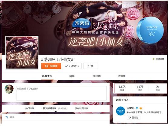 多种营销内容与手段使水密码#逆袭吧!小仙女#华话题获得1.6亿阅读量并登上微博热门话题榜。