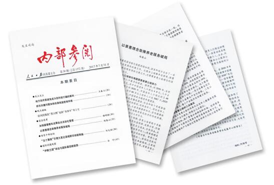 众所周知,《内部参阅》是《人民日报》主办的一份权威性政策研究刊物,其读者对象是司局级以上党政军高级领导干部,主要刊发涉及国内外重大政治、经济、文化、外交、军事、社会等方面具有典型性、敏感性,事关大局的一些重大事件、重要问题,是党中央、国务院快速了解真实情况的重要渠道和制定方针政策的重要参考,具有相当大的决策影响力。
