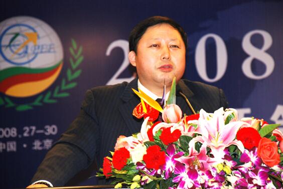 ▲赵春山在世界华人经济论坛上提出公益事业产业运作理念