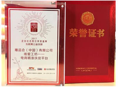 8月18日,“2017企业社会责任荣誉盛典”在深圳举办,唯品会凭借“唯爱工坊”特色电商公益平台获得“互联网公益创新奖”,唯品会董事长兼CEO沈亚获“企业社会责任领袖”称号。