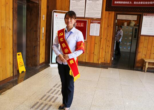 记者在各旅游景区看到,身披印有黄色党徽和“党员示范岗”绶带、戴着党徽、披着红色黄字“安全劝导员”或“文明劝导员”绶带、戴着红色黄字“安全劝导员”、“文明劝导员”袖章的工作人员活跃在游客中间热情地提供服务,或劝导游客注意安全,或耐心解答游客的询问,或热情地帮助游客拍照,或检查旅游设施;或拾起游客不经意丢弃的矿泉水瓶、纸屑放入垃圾箱;黄色党徽和“有困难找党员”、黄色党徽和“党员服务热线”的醒目标识在景区随处可见,形成一道亮丽的风景,让人感觉到“处处有组织,处处有党员”,从而拥有一种安全、可依赖感。