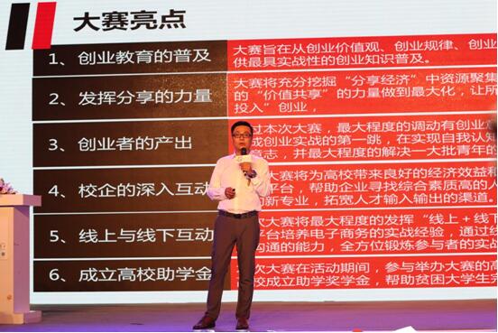 富熊(集团)网络科技有限公司执行总裁李军先生在发布会上详细地介绍了整个创业实践大赛的情况,得到了与会嘉宾的高度认同。李军先生提到,自从2014年9月的夏季达沃斯论坛上李克强总理提出“大众创业,万众创新”的号召以来,“创业”浪潮席卷全国,青年人是推动社会发展的主力军,近些年来,我国每年的大学毕业生基本上都超过700万人,加上未升学的青年人群规模可达到1500万人,如何让这些青年人通过创业的方式尽快自立,同时实现自我的人生价值是值得整个社会关注的问题,本次大赛通过让创业者在“0风险”的基础上参与整个商业流通环节的全程,完成创业实践,在为整个社会打开供给侧,协调消费端的过程中实现了个人创业的第一跳,同时也帮助了大量实体企业拓宽产品销路。