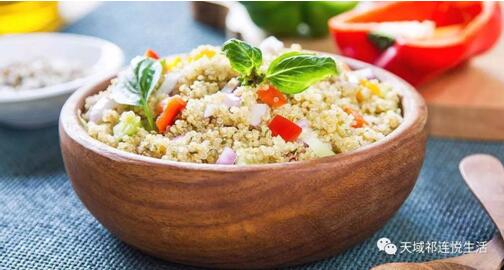 藜麦零胆固醇,不含麸质,藜麦熟后体积会膨胀3-4倍,有饱腹感,当你食用藜麦后,感觉比食用标准的减肥食品更饱,能减少每次进餐的数量。