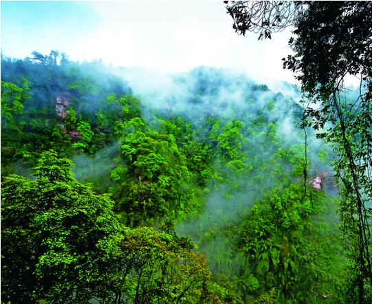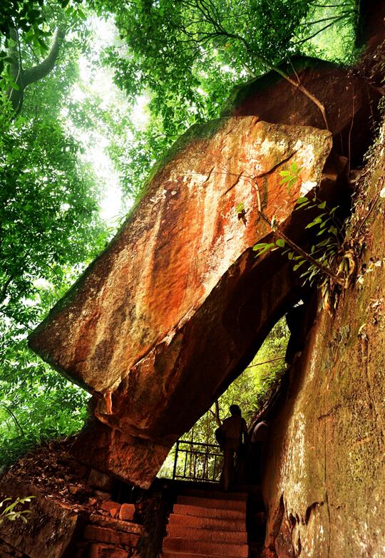 这是一条用丹霞石铺成的路,当铺完最后一块条石,恰好是1818步台阶。这里的空气已经被原始森林和小溪流泉过滤了一千遍一万遍,每一毫升空气,都爆满了负氧离子。著名报告文学作家徐迟先生一走进燕子岩,立即被满沟满岭的原始森林所震撼,后来,他在那篇叫做《贵州本是富裕省》的作品中写道:“在地球北纬28°线上,如今仅存下赤水河畔这座原始森林,至今是圣洁的处女林。”这“处女林”,当然也包括了燕子岩。全国政协委员周政贤教授也说:“像赤水这样大面积、有价值的原始森林,在全国也是罕见的”。如果说,赤水是大西南地区一台功能巨大的空气过滤器和洗肺机,这燕子岩,当然就是一座绿色洗肺工厂了。