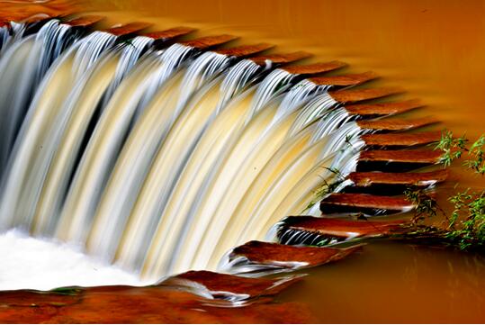 月亮潭瀑布:宽42米、高10米,远看秀美得如一把向下的弯形银梳。