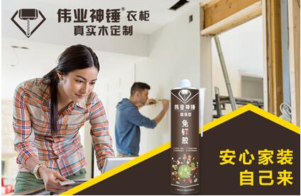 伟业神锤牌免钉胶是广州市伟正木制品有限公司研发的高端技术新产品,具有超强粘合力、抗老化、防龟裂、免钻孔、无钉眼、不损害基材、操作方便、节时省量等突破性功能,产品在施工过程中快捷、完美的品质表现,更符合了现代人的高标准要求,削减了繁琐的钻孔、打钉等施工过程,有效地提高工作效率及节约施工成本,深受消费者青睐。