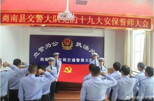 商洛交警决心以舍小家、顾大家,放弃休假、坚守岗位、加班加点、万众一心、庄严践行“对党忠诚、服务人民、执法公正、纪律严明”的总体要求,用实际行动为祖国母亲生日献礼,为党的十九大胜利召开营造安全、畅通、有序的道路交通环境。(崔伟 曾益民)