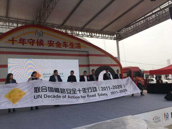 在2017汽车安全中国行活动现场,当地交警领导、昆仑润滑油领导、车企领导和代表、中国汽车技术研究中心领导共同主持活动启动仪式,并发起联合国道路安全十年行动倡议。