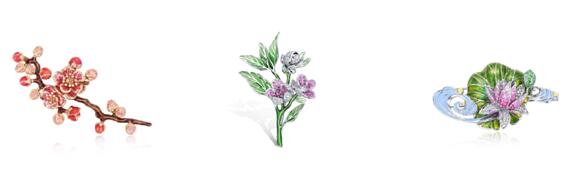(作品:“水莲”、“红梅”、“霏桃”三款胸针)