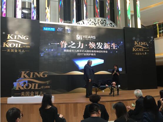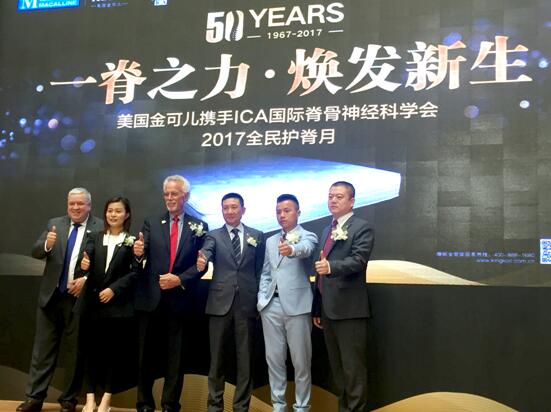(2017年10月21日)由KINGKOIL美国金可儿携手ICA(国际脊骨神经科学会)举办的“一脊之力,焕发新生”2017全民护脊月启动仪式在上海红星美凯龙真北店举行。金可儿全球总裁Owen Shoemaker先生、金可儿全球国际事业部副总裁 Maria Balistreli女士、金可儿中国执行董事王珏先生、金可儿中国副总裁邵堰南先生、安宏资本执行董事陈宇恩先生、红星美凯龙控股公司战略投资部总裁车一鸣女士、红星美凯龙副总裁卢庆文先生、红星美凯龙真北商场副总经理胡云霞女士、以及以George B. Curry博士为代表的ICA脊骨专家团等重磅嘉宾出席了启动仪式。