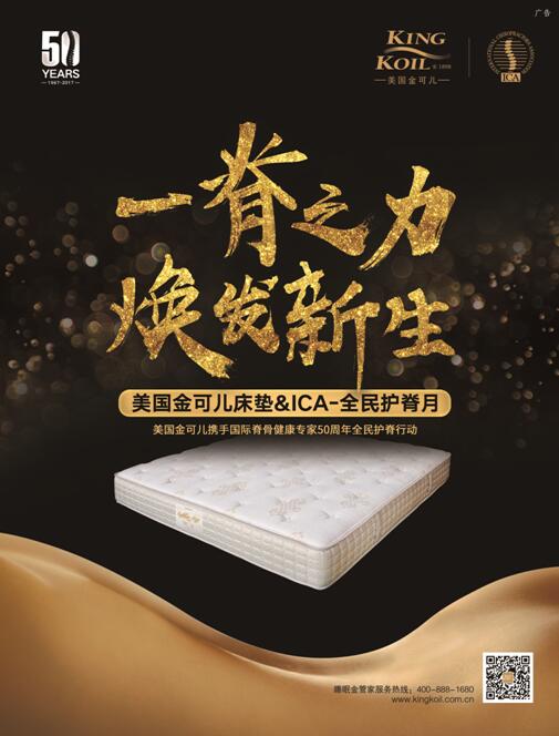 此次金可儿携手ICA举办全民护脊月活动,ICA权威脊骨专家将兵分5路走访30座城市,举办专业护脊知识讲座,掀起新一轮的护脊热潮,希望能为中国大众带来更多健康睡眠福利的同时,唤醒更多消费者的脊骨健康意识,让他们从包括睡眠在内的日常生活中开始有意识地去保护脊骨,从而促进脊骨健康,拥有舒适睡眠,享受高品质生活!
