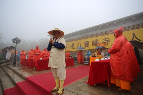 宝峰寺方丈新军大和尚在供斋法会上开示:“今天能在大悲甘露的加持下用斋,意义更加非凡。生活中谁不经风雨,大家日后遇到困难、烦恼、挫折时,回忆今天,雨中依然选择坚持,这份经历就是帮助我们成长的最佳方式。”