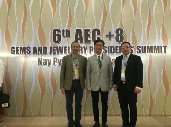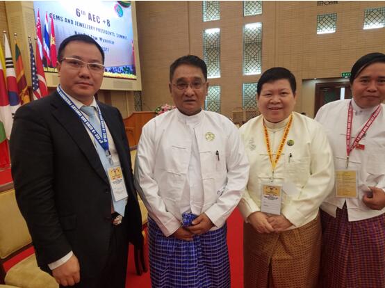 8月4日,第六届东盟经济共同体AEC+8宝石与珠宝主席峰会在缅甸国际会议中心盛大举办。广东省钻玉珠宝研究院(GJI)院长欧阳勇军和上海宝玉石交易中心董事长、上海东浩兰生集团董事长王强作为中国代表在东盟经济共同体AEC+8珠宝合作备忘录上签字,中国珠宝玉石首饰行业协会副会长、广东省珠宝玉石交易中心总经理黎志伟,中国珠宝玉石首饰行业协会副秘书长韩洁、国际合作部副主任刘洋等出席了本次会议。