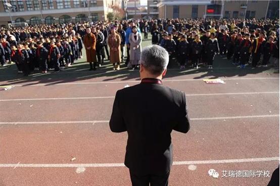(李世伟 李响 )2017年12月13日是第四个国家公祭日。艾瑞德国际学校校长李建华庄重着装,一早就来到学校把学校广场上的国旗降至半旗,而后他在国旗下默默哀悼,不一会儿几个班级数百名同学自发来到操场,整齐列队,共同缅怀抗战先烈。在这一天,艾瑞德国际学校也举行了一系列“铭记历史,祭奠国殇”的爱国主义教育活动。