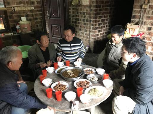 百投集团广润公司董事长陆志堂年前下乡与贫困户交谈制定致富计划,与他们同坐一桌亲切交谈,认真倾听他们的诉求,询问他们的生活情况,关心他们是否做好过年的准备,平易近人,让贫困户们在冬日里感受到了温暖。