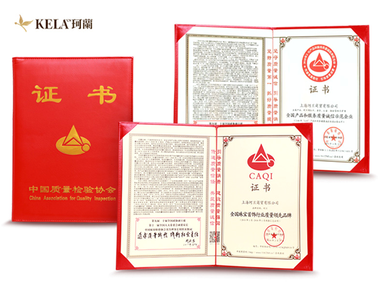(珂兰再获中国质量检验协会颁发的“全国珠宝首饰行业质量领先品牌” 和“全国产品和服务质量诚信示范企业”证书)