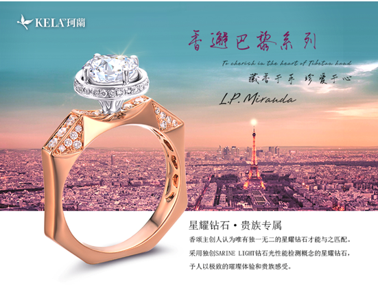 2017年,珂兰聘请法国明星设计师Henry设计“香邂巴黎”高端婚戒系列,为确保“香邂巴黎”在任何角度,都能绽放更耀眼的光芒,珂兰选择颠覆传统4C分级标准的星耀钻石为主石,并以独具匠心的设计理念和精湛绝伦的重工工艺,让钻戒迸发闪耀火彩,尽显奢雅之感。珂兰放大产品本身所具有的特质,将浪漫爱情主张演绎到极致。