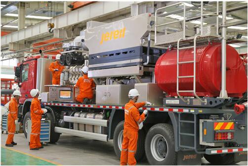 杰瑞制造的世界首台4500型阿波罗涡轮压裂车