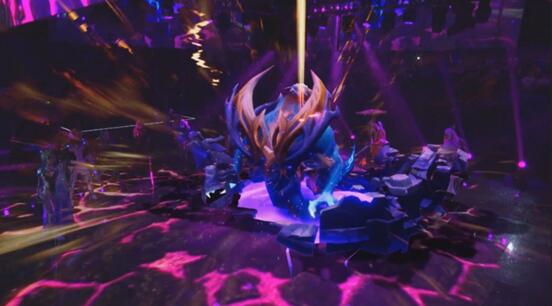 本次2018QGC同样使用了前沿的AR技术。不同以往的是,制作团队首次将真人COS秀与AR技术融合在一起。透过屏幕,制作团队还原了一座精美的长安城与游戏中的主宰,通过粉猴成员的演绎,为观众奉上了“游戏人物击败主宰,成功保卫长安城”的精彩情景剧,开创了真人与AR特效互动的全新演绎方式。这是QGC制作团队一次创意的尝试,对于演出嘉宾的走位表演,以及AR特效精准的雕刻与把控都是一项极具挑战的任务。最终现场以及屏幕前观众不自主的惊艳充分肯定了演出效果。或许在之后的电竞赛事中能看到越来越多真人与AR技术的融合演出。这一次,QGC又走在了潮流的前沿。